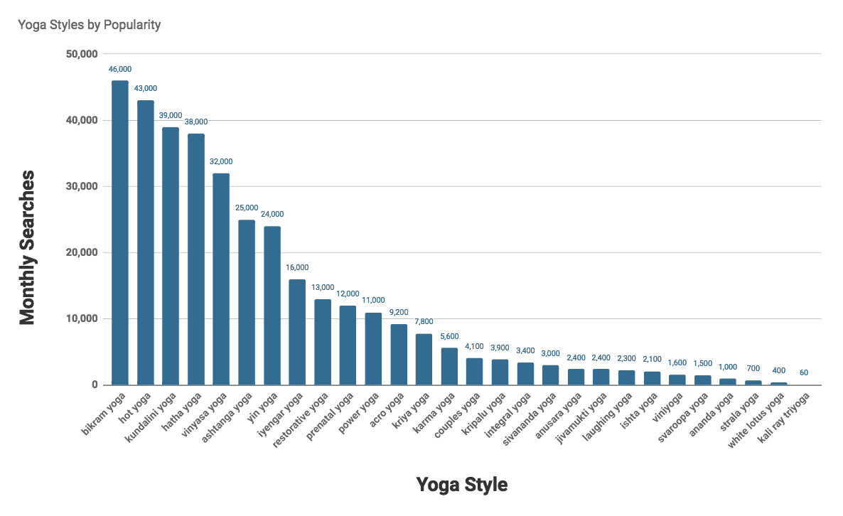 Common names you may hear or read about include Ananda, Anusara, Ashtanga, Bikram, Iyengar, Integral, Kripalu, Kundalini, Power, Prana, Sivananda, Vinyasa and many more. Each style has unique characteristics, and it can be helpful to consult with a specific teacher or school, or review the details on their profile, to learn more about their approach to yoga.